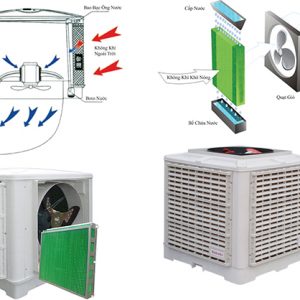 Máy làm mát Nako Làm mát không khí bằng hơi nước qua hệ thống máy làm mát bên trong tích hợp tấm trao đổi nhiệt bên trong máy cùng hệ thống nước cấp và 3 cửa gió vào (3 hướng khí vào) đưa ra môi trường sử dụng không khí mát và rất trong lành, không tạo ẩm hoặc phun sương (nên không ảnh hưởng đến người sử dụng và thiết bị điện tử xung quanh) đặc biệt làm mát không khí với diện tích 150-200m2 mà không cần phải trong điều kiện kín như điều hòa.